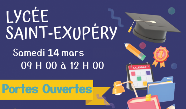 Venez rencontrer les équipes enseignantes et découvrir les filières, options et spécialités du lycée Saint-Exupéry le samedi 14 mars 2026 de 9h à 12h dans le cadre de la Journée Portes Ouvertes.